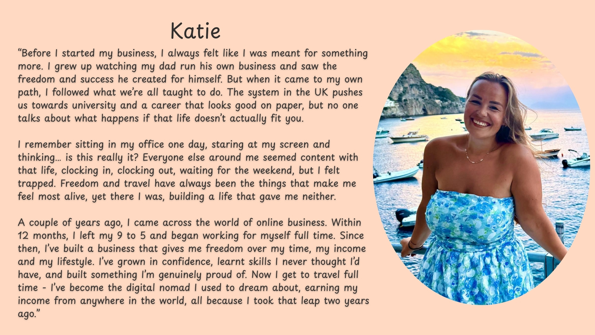 I currently work in an office an hour away from home and as I realised I need to take back the control of my life and build something for myself. I discovered this online business opportunity in 2025 and I have never looked back!